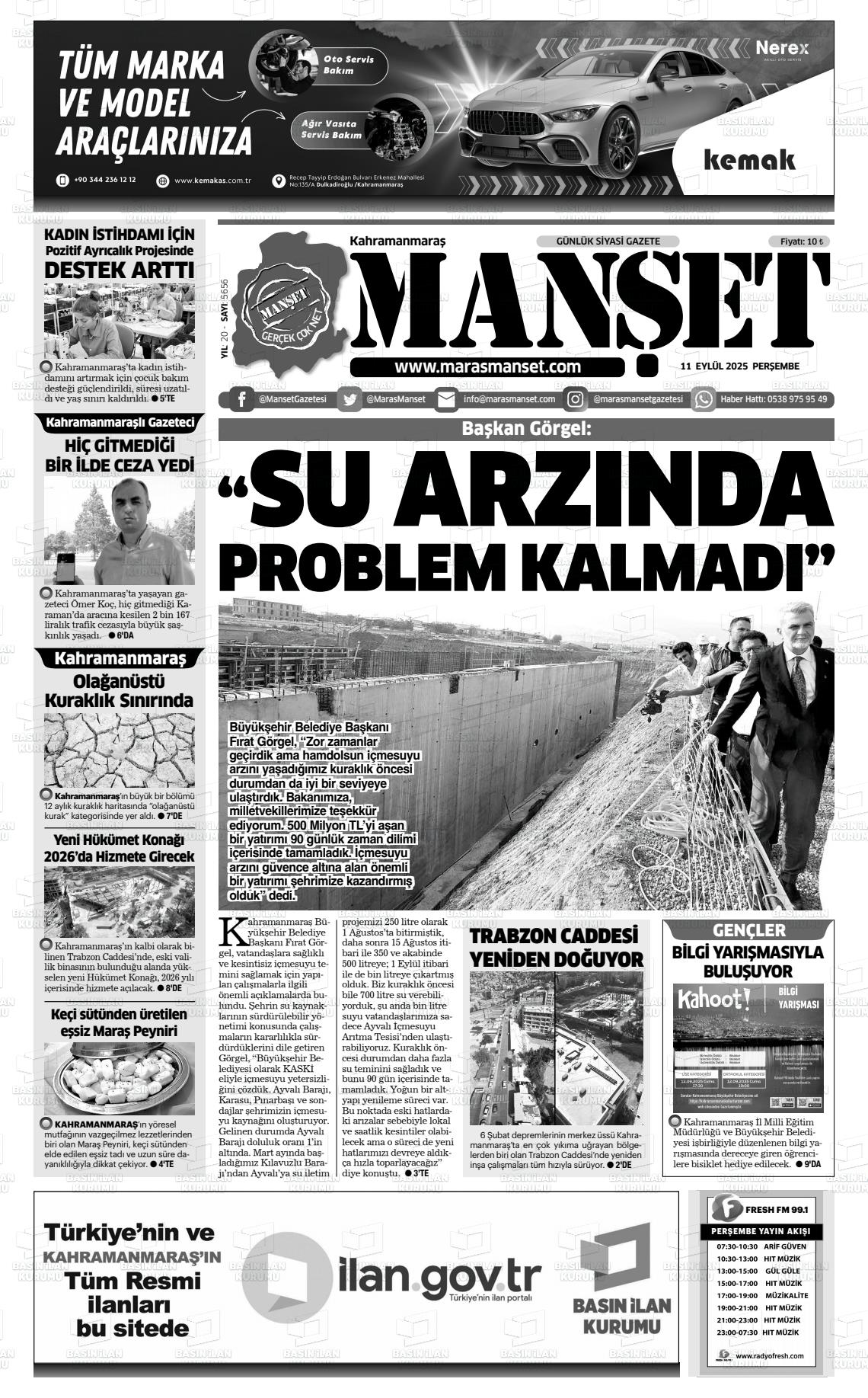 KAHRAMANMARAŞ MANŞET